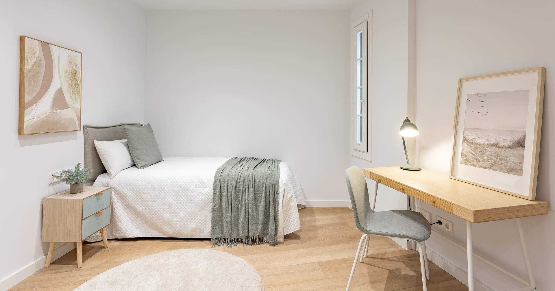Las viviendas están diseñadas con calidades de alto nivel, destacando por sus acabados sofisticados y su distribución funcional. Los detalles arquitectónicos mantienen la esencia histórica del edificio, creando un ambiente único que fusiona lo clásico con lo contemporáneo. Además, los residentes disfrutan de una zona comunitaria con piscina, ideal para relajarse y disfrutar del sol mediterráneo.